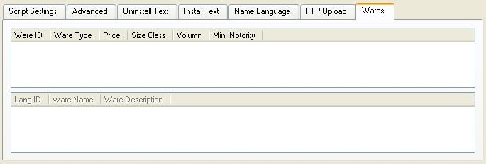 EMP is a mod that adds more wares to the game, to use it you need to have the mod installed, and any users of your script also needs the mod installed. Like the standard wares, you can also not edit the price and notority but there is alot more selection available so less chance of conflicts with other scripts, however it is still limited as you cant select the exact price. All EMP wares are displayed as normal wares with a volumn of 1. Unlike Standard wares, you can have multiple wares in the same ship but can still be used like ship extensions if you wish. You also have to manually keep the stock levels up as they act like wares in factories.